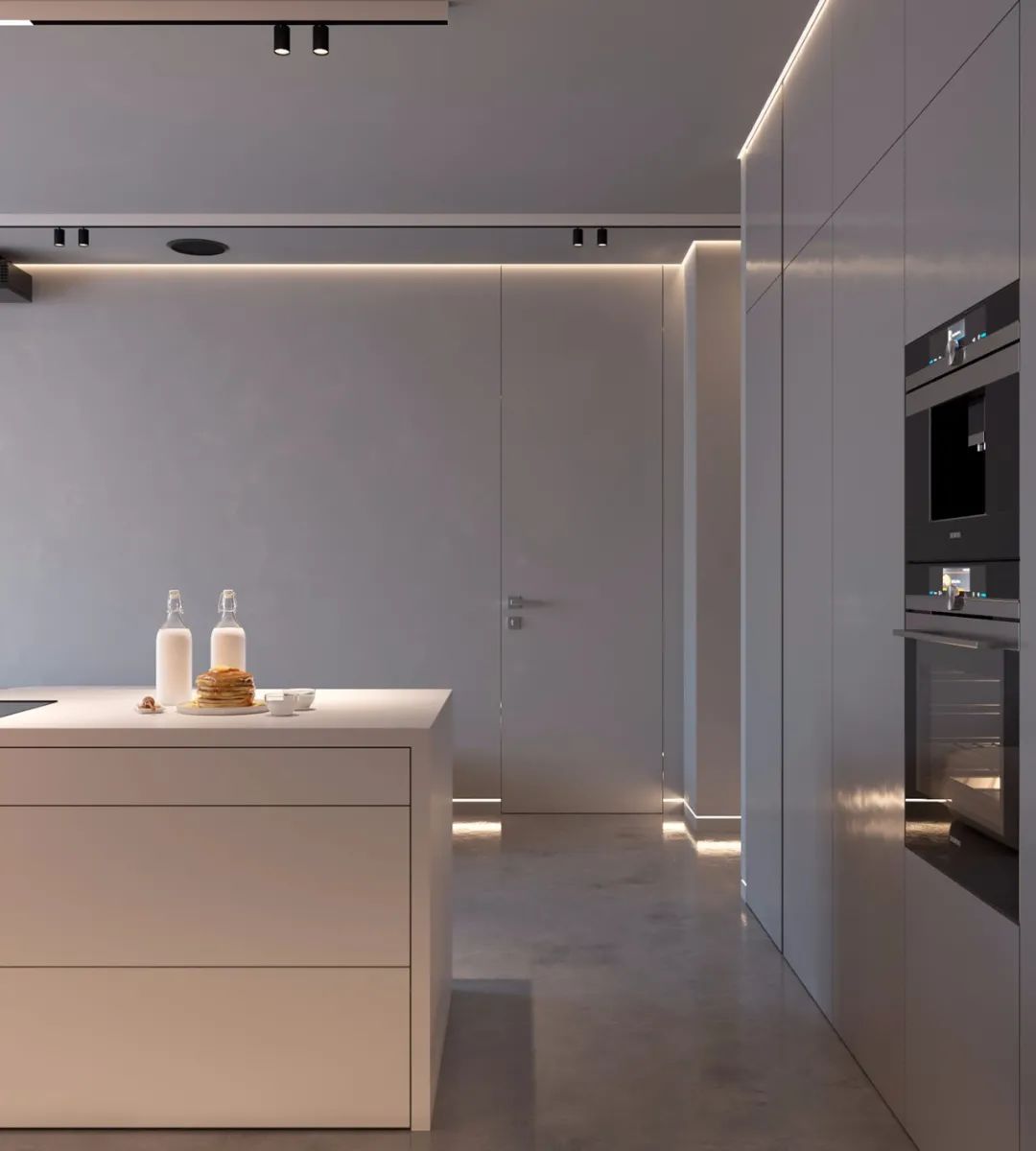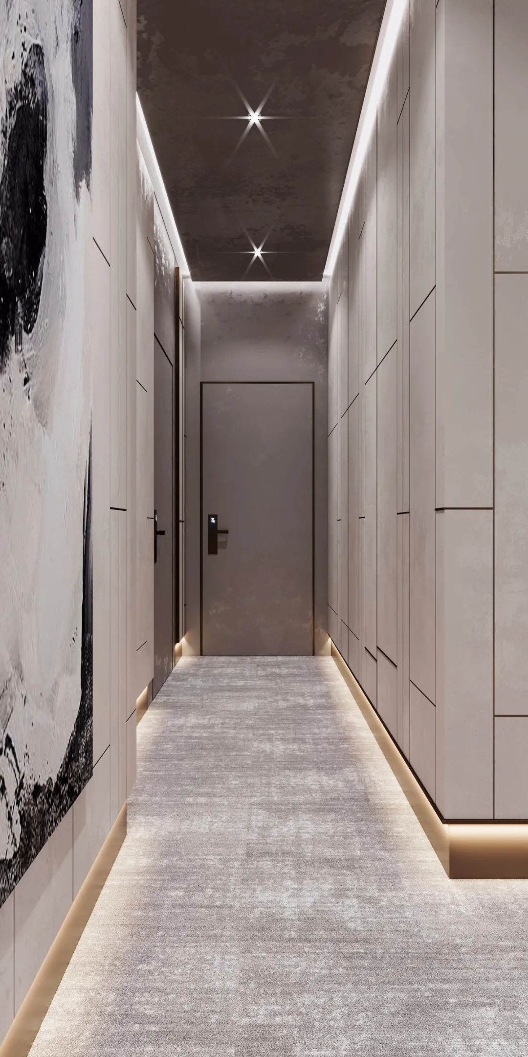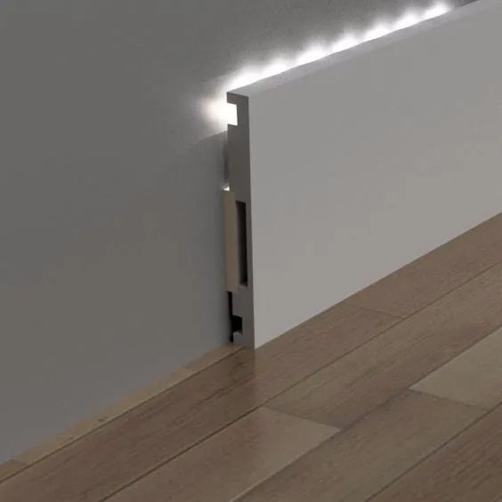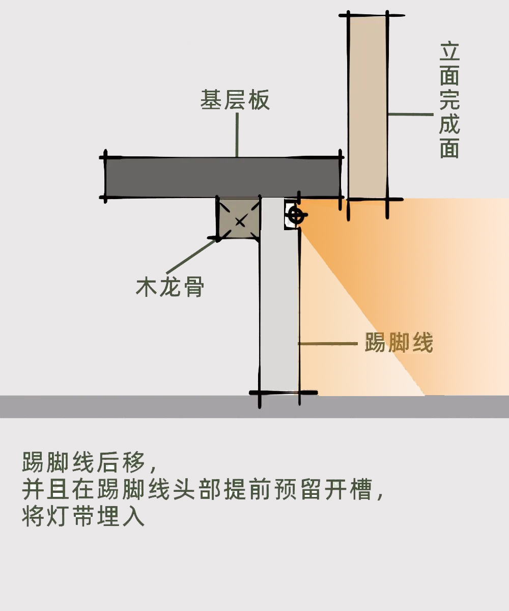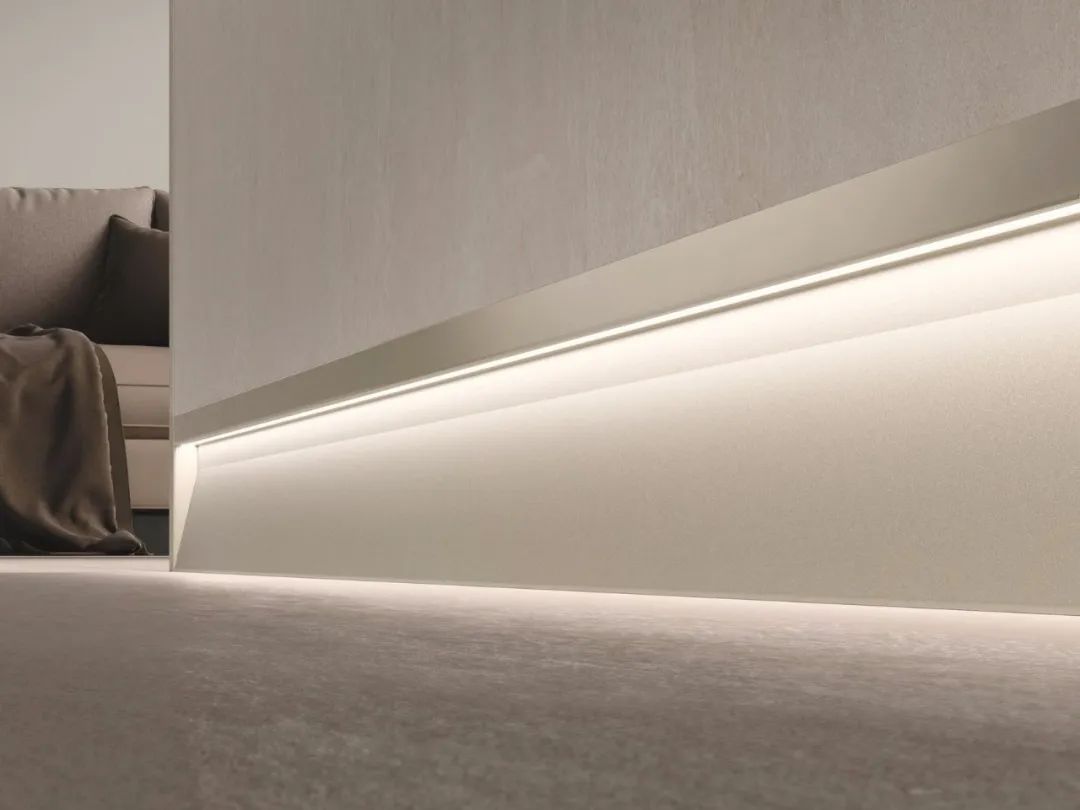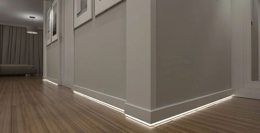 根據踢腳線暗藏燈帶光源照射方向