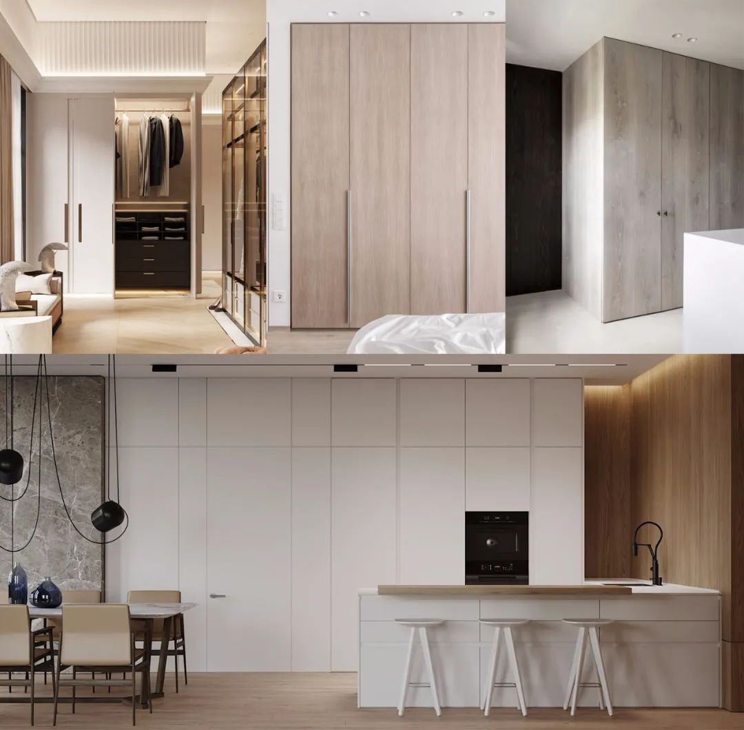 超高柜門在室內設計領域的應用非常廣泛,常用于玄關入戶區域的鞋柜,餐廳的餐邊柜,客廳電視背景墻的收納柜,臥室衣帽間的衣柜和廚房櫥柜,陽臺的收納柜都可以采用超高柜門的形式,根據每個空間的特性需求,來合理的配置柜體內部的收納區域。
